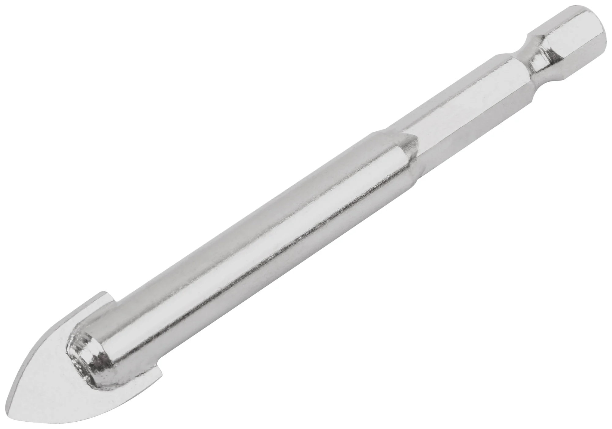 Сверло изготовлено из хромированной стали с твердосплавной карбидной вставкой, что обеспечивает долговечность и надежность. Шестигранный хвостовик позволяет быстро и надежно закрепить сверло в патроне шуруповерта или дрели, исключая прокручивание.