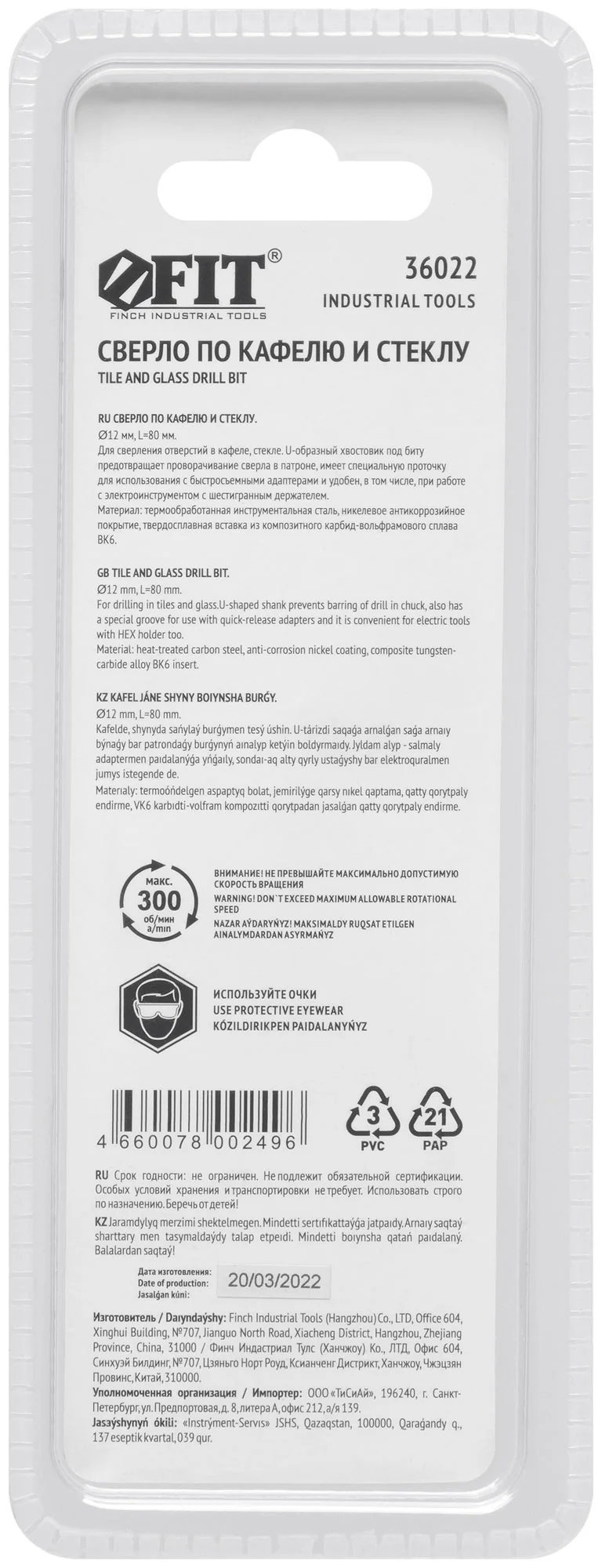 Выберите сверло FIT 12 мм, чтобы обеспечить качественное и надежное сверление в деликатных материалах.