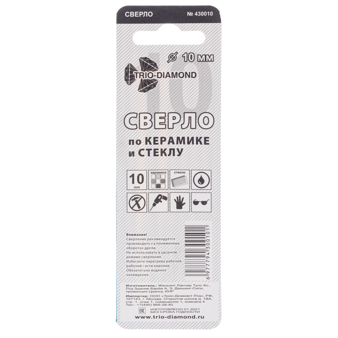 Выберите сверло TRIO-DIAMOND 10 мм, чтобы обеспечить высокое качество и точность при работе с керамикой и стеклом.