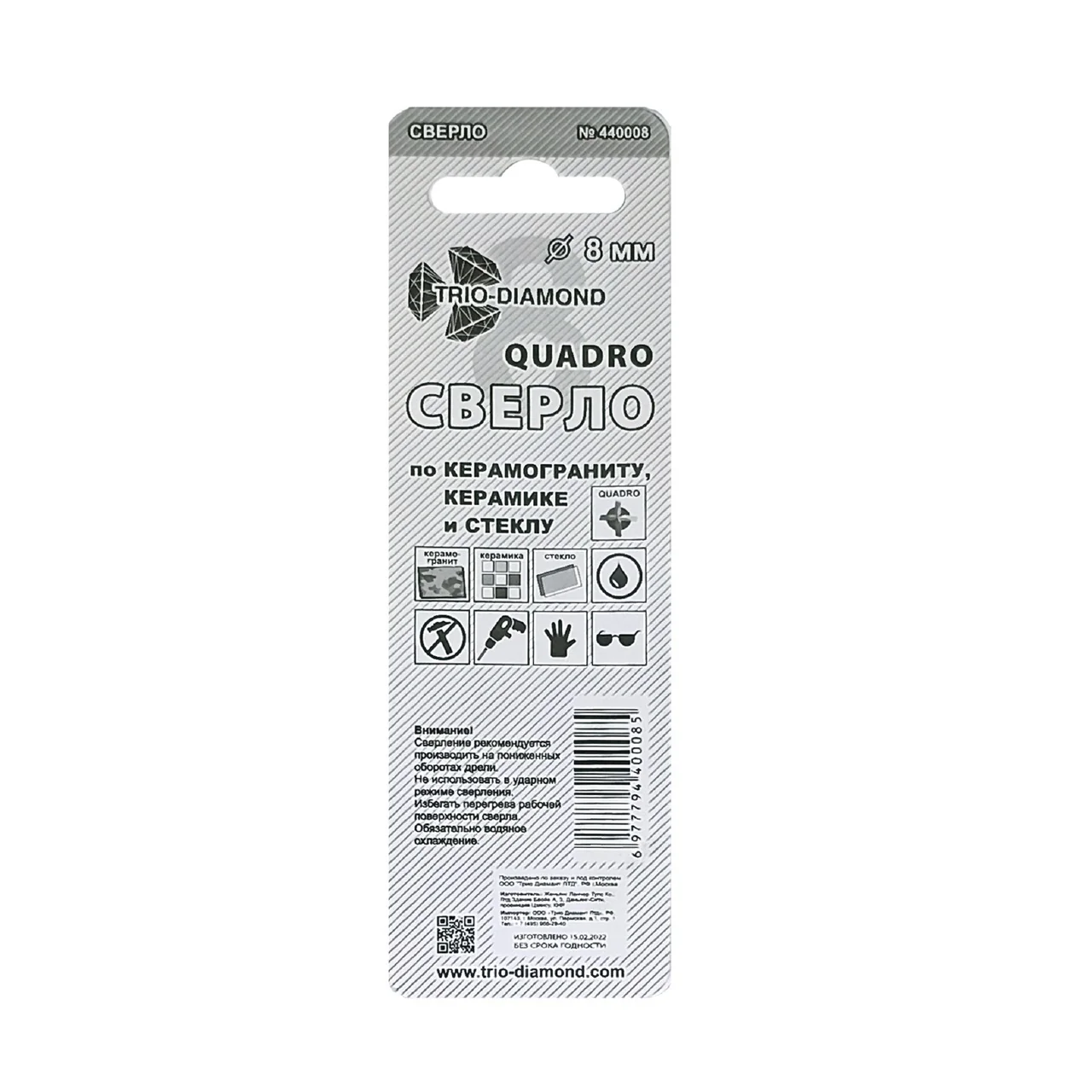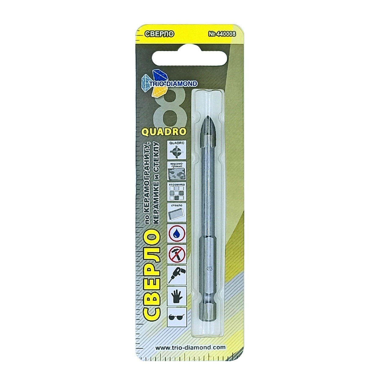 Выберите сверло TRIO-DIAMOND 8 мм, чтобы гарантированно получить качественный результат при работе с керамикой и стеклом.