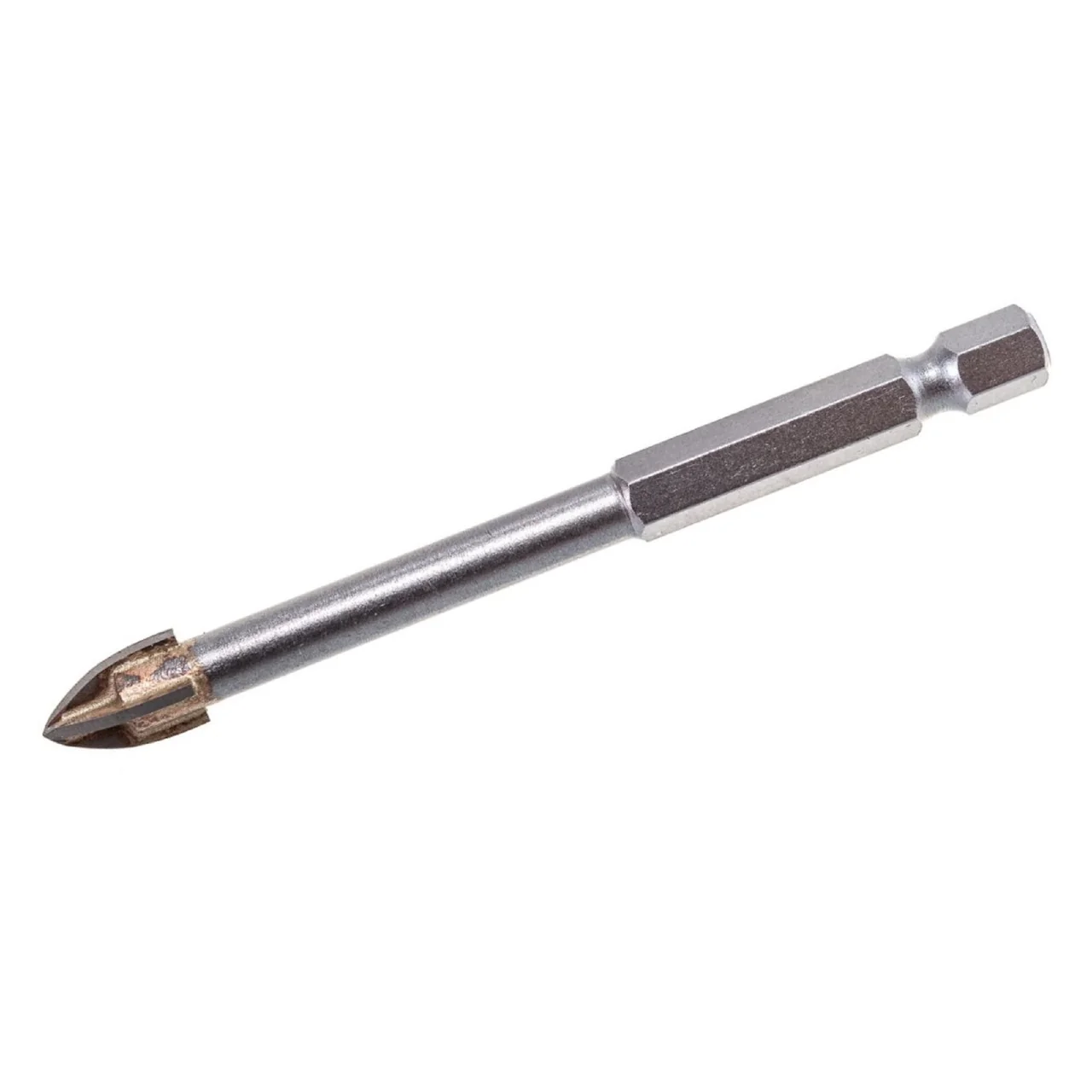 Изделие оснащено шестигранным хвостовиком 1/4HEX - E, что обеспечивает надежную фиксацию в патроне дрели или шуруповерта. Копьевидный тип сверла и четыре режущие грани способствуют эффективному и быстрому сверлению. Максимальные обороты вращения составляют 2 500 RPM, что позволяет работать с различными материалами, такими как керамогранит и стекло.