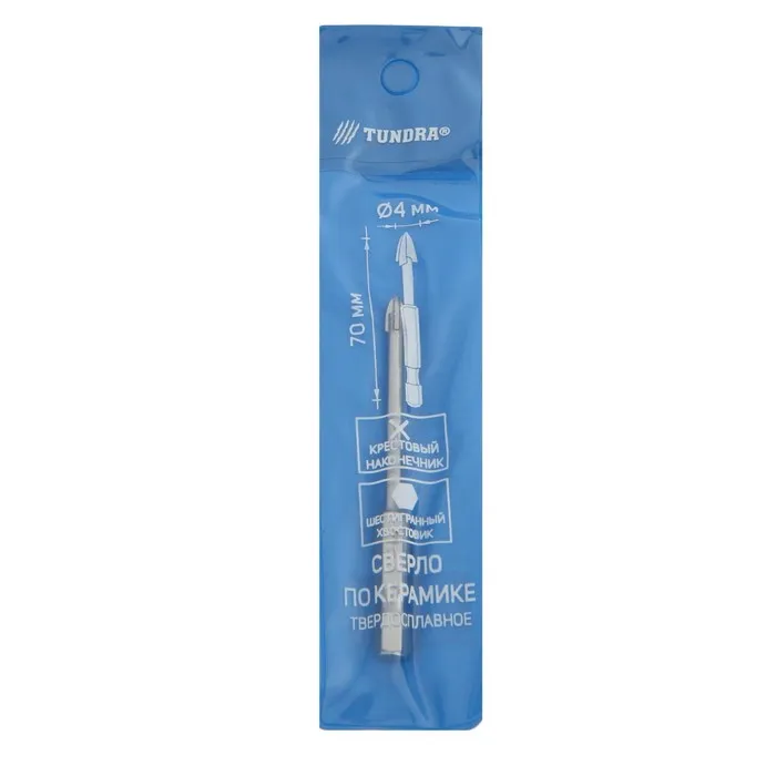 Сверло по керамике твердосплавное ТУНДРА, крестовый наконечник, шестигр. хвостовик, 4 мм — Характеристики