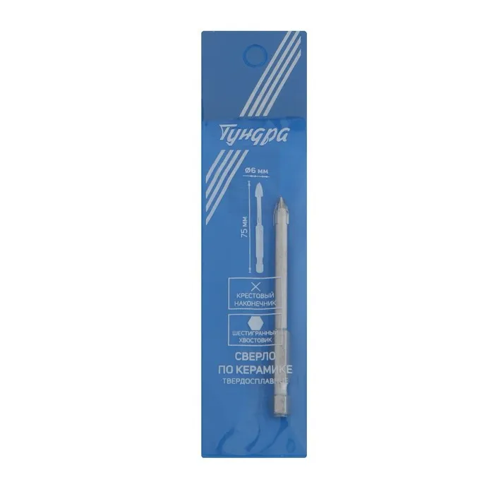 Сверло по керамике твердосплавное с шестигранным хвостовиком ТУНДРА предназначено для совместного использования с дрелью.