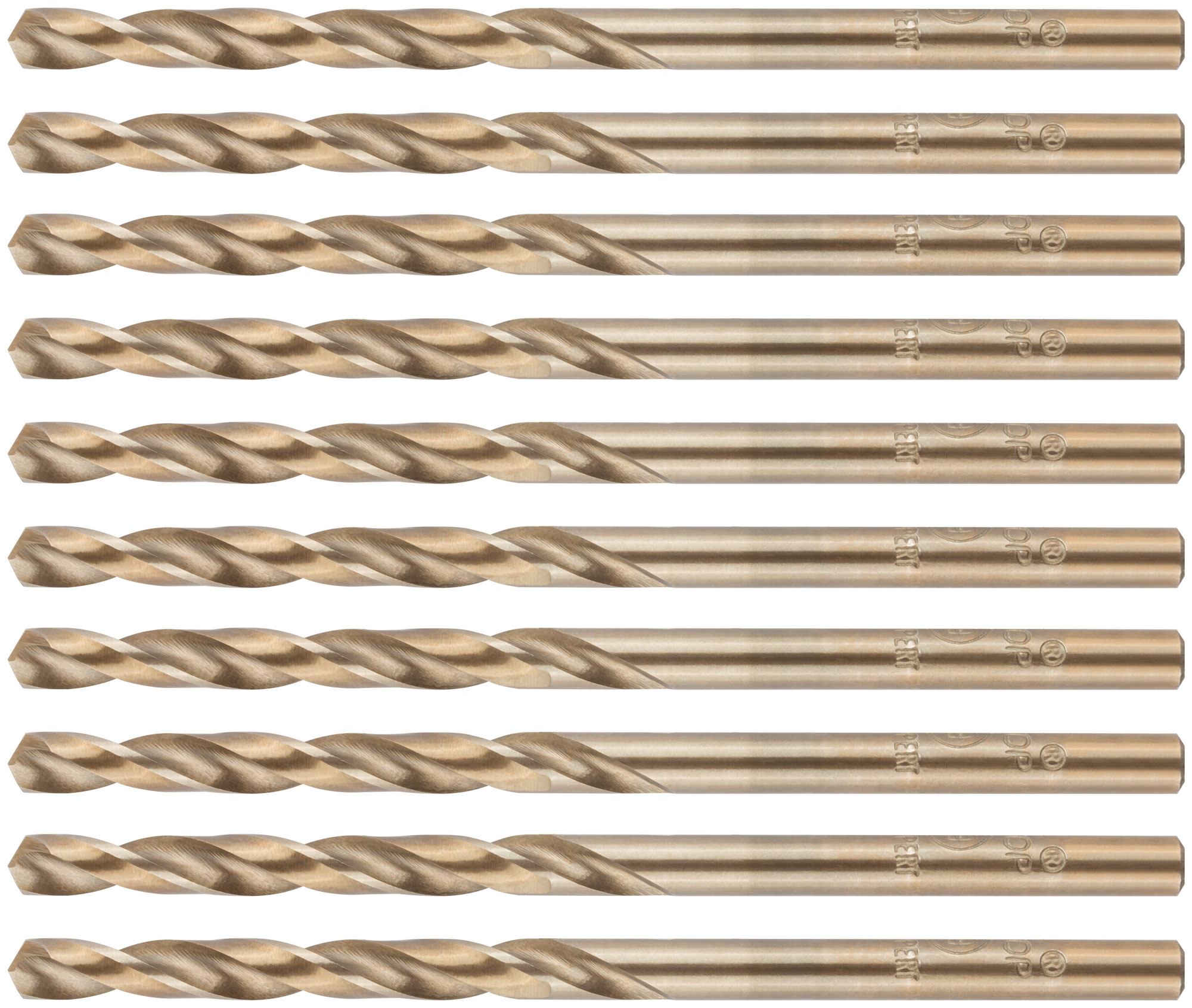 Сверло изготовлено из высококачественной быстрорежущей стали HSS. Уникальная ступенчатая закалка и крестообразный угол заточки 135 градусов обеспечивают высокую твердость и устойчивость к излому. В состав материала входят 6% Вольфрама, 5% Молибдена, а также 4% Хрома и 2% Ванадия, что защищает сверло от коррозии и продлевает срок службы.