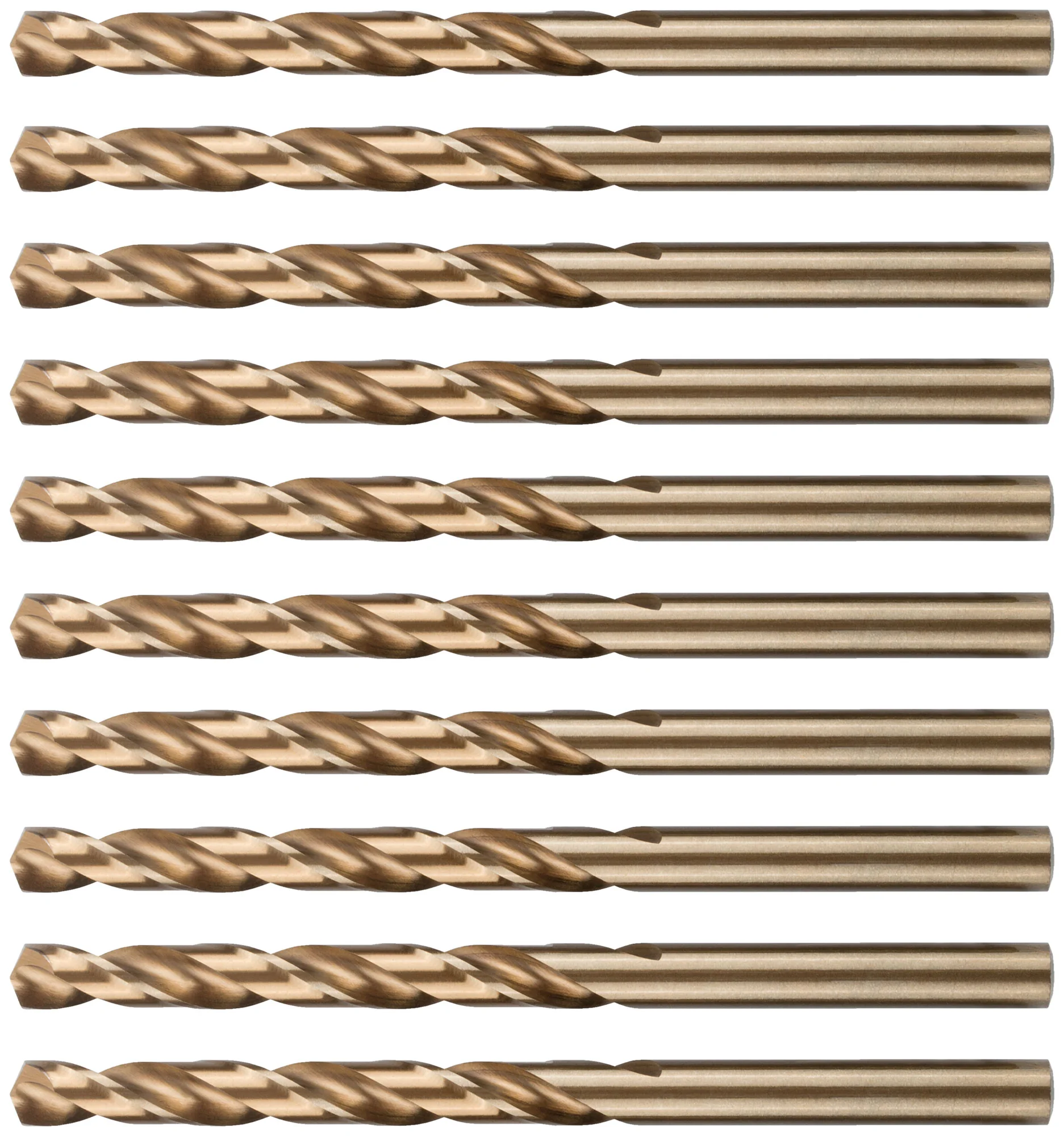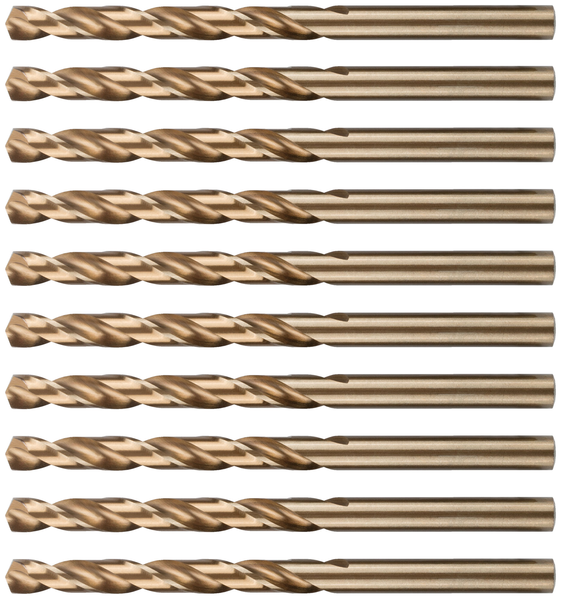 Сверло изготовлено из высококачественной быстрорежущей стали HSS с добавлением 6% вольфрама и 5% молибдена, что позволяет выдерживать высокие температуры. Дополнительные 4% хрома и 2% ванадия защищают от коррозии, продлевая срок службы инструмента. Упаковка из 10 штук в удобном подвесном пластиковом боксе упрощает хранение и транспортировку.