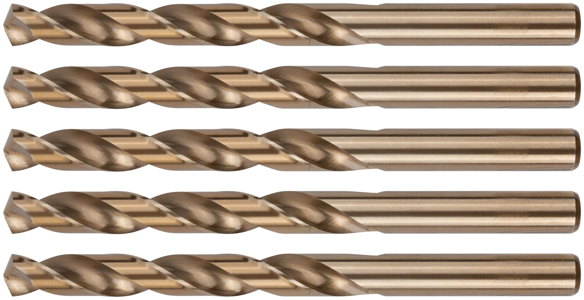 Конструкция сверл включает добавление 5% кобальта к быстрорежущей HSS стали (Р6М5К5), что обеспечивает их долговечность и устойчивость к высоким температурам. Цилиндрический хвостовик и угол заточки 135° способствуют стабильности и эффективности сверления.