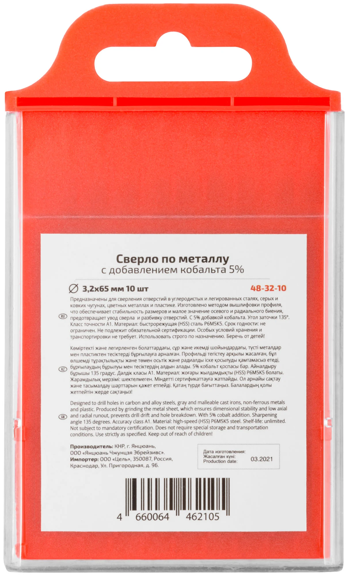 Преимуществом данного сверла является его профессиональный класс точности А1, что позволяет выполнять работы на высоком уровне качества. Упаковка из 10 штук в подвесном пластиковом боксе делает его удобным для хранения и транспортировки.