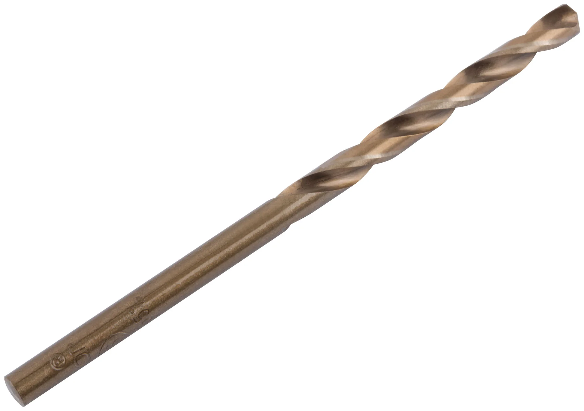 Изготовлено из быстрорежущей HSS стали с добавлением 5% кобальта (Р6М5К5), сверло обладает высокой прочностью и устойчивостью к износу. Цилиндрический хвостовик и угол заточки 135° обеспечивают точное сверление и легкость в эксплуатации.