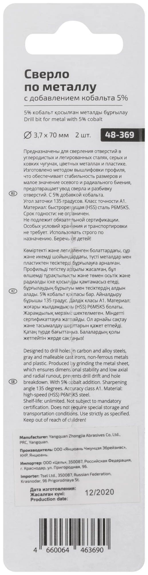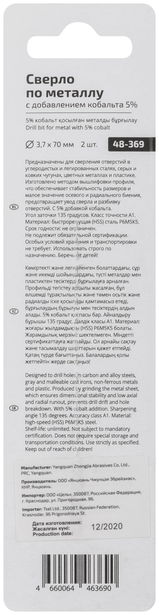 Изготовлено из быстрорежущей HSS стали с добавлением 5% кобальта, что придает инструменту дополнительную прочность и износостойкость. Цилиндрический хвостовик и угол заточки 135° способствуют высокой эффективности сверления.