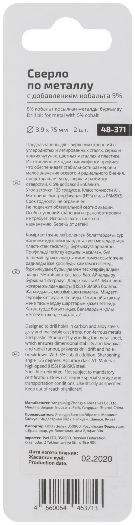 Изготовлено из быстрорежущей HSS стали с добавлением 5% кобальта (Р6М5К5), сверло обеспечивает надежную работу даже при высоких нагрузках. Угол заточки 135° и цилиндрический хвостовик делают его удобным для профессионального использования.