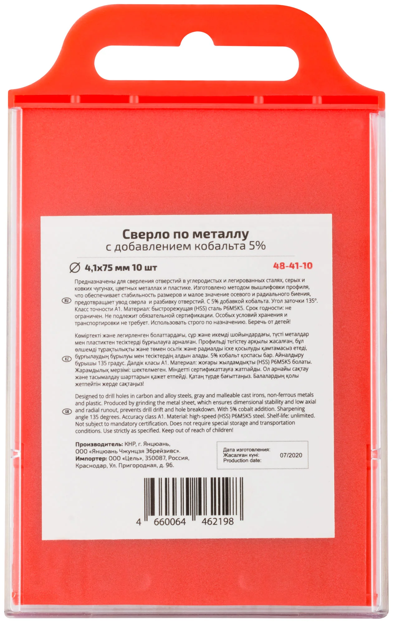 Сверло по металлу 4,1 x 75 мм с кобальтом 5% для профессионального использования