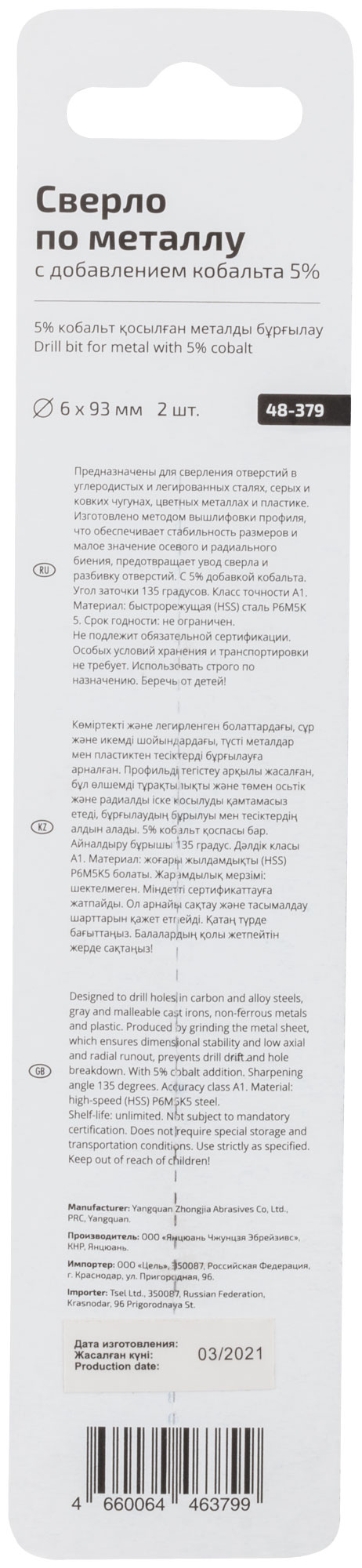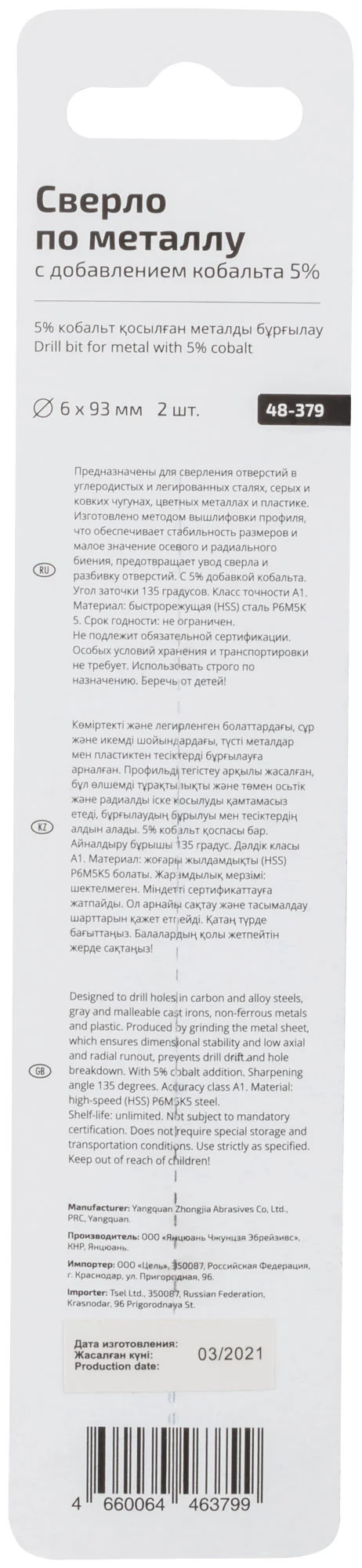 Изготовлено из быстрорежущей HSS стали с добавлением 5% кобальта, что обеспечивает долговечность и высокую производительность даже при работе с твердыми материалами. Сверло оснащено цилиндрическим хвостовиком и имеет угол заточки 135°, что гарантирует стабильное и точное сверление.