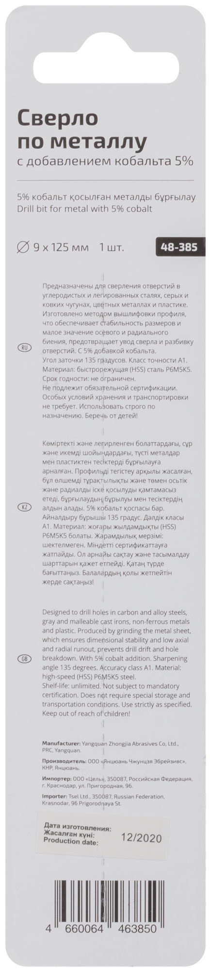 Изготовленное из быстрорежущей стали HSS с добавлением 5% кобальта, сверло обладает высокой износостойкостью и устойчивостью к перегреву. Цилиндрический хвостовик обеспечивает надежное крепление в патроне, а угол заточки 135° способствует быстрому и легкому сверлению.