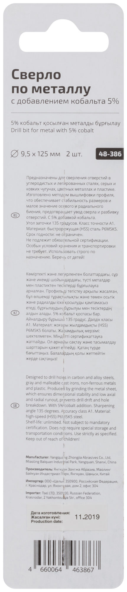 Кобальт в составе металла улучшает термостойкость сверла, что позволяет эффективно работать при высоких температурах без потери режущих свойств. Это делает сверло отличным выбором для профессионалов, которым важна стабильность и качество результатов.