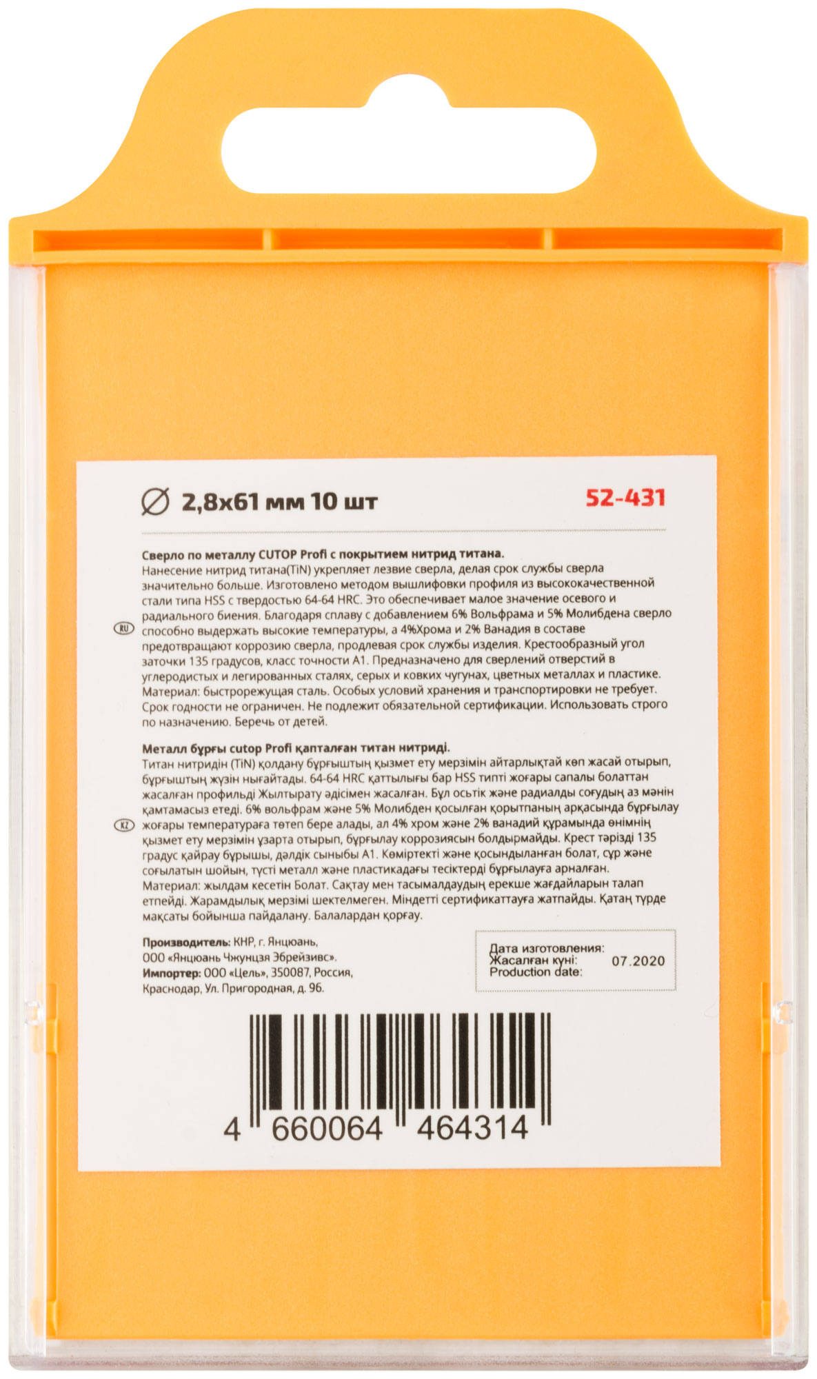Изготовлено из высококачественной быстрорежущей стали, сверло обладает твердостью 64-64 HRC, что обеспечивает его прочность и долговечность. Титановое покрытие укрепляет лезвие, снижая износ и увеличивая срок службы.