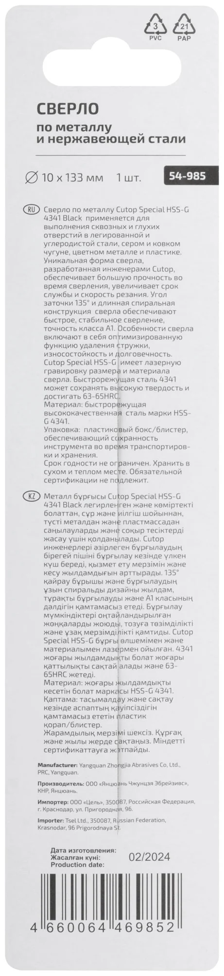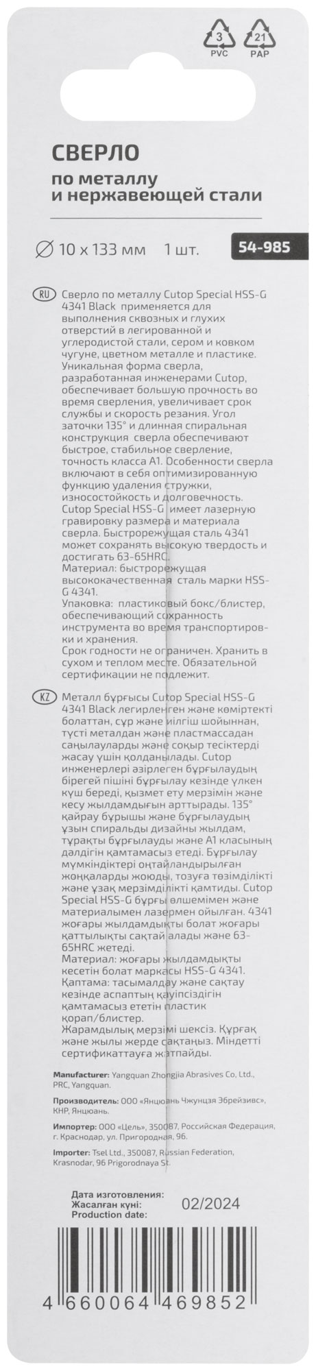 Выберите сверло Cutop Special 54-985 для надежного и качественного сверления металлических заготовок и других материалов.