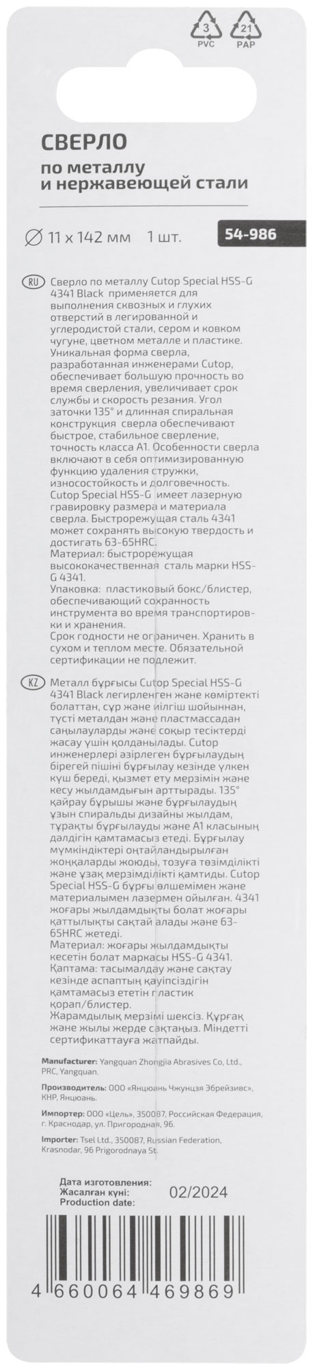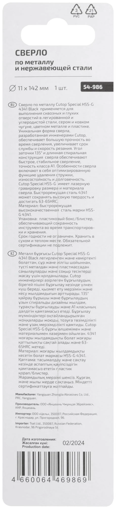 Изготовлено из высококачественной быстрорежущей стали HSS-G с твердостью 63-67 HRC, что гарантирует долговечность и устойчивость к износу. Угол заточки 135° и длинная спиральная конструкция обеспечивают стабильное и быстрое сверление с высокой точностью.