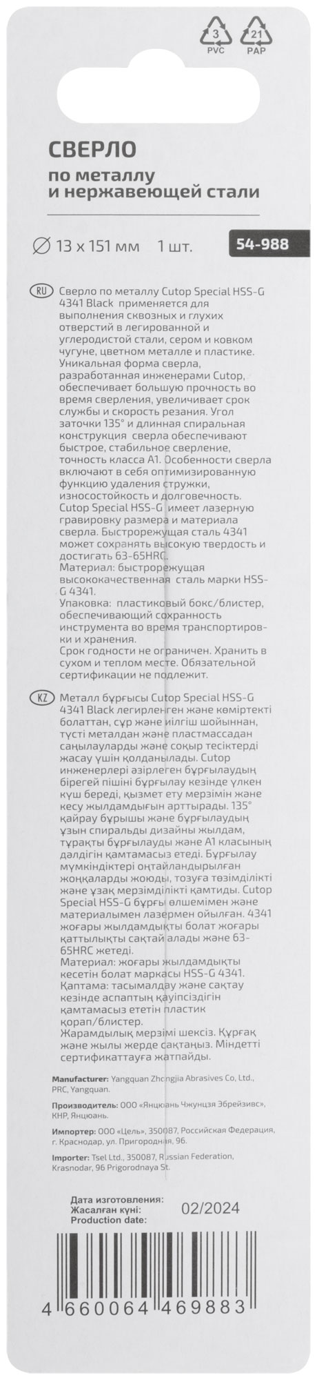 Сверло по металлу Cutop Special HSS-G 13 х 151/90 мм идеально подходит для создания сквозных и глухих отверстий в металлических заготовках. Оно справляется с легированной и углеродистой сталью, серым и ковким чугуном, а также цветными металлами и пластиком. Используйте его для точного сверления в различных производственных и ремонтных задачах.