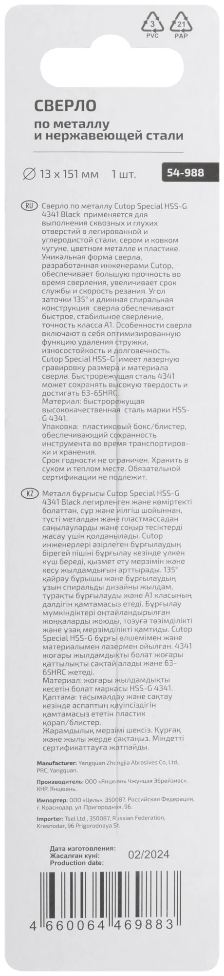 Изготовлено из высококачественной быстрорежущей стали HSS-G с твердостью 63-67 HRC, сверло обладает повышенной прочностью. Длинная спиральная конструкция и угол заточки 135° обеспечивают быстрое и стабильное сверление, а лазерная маркировка помогает избежать ошибок при выборе инструмента.