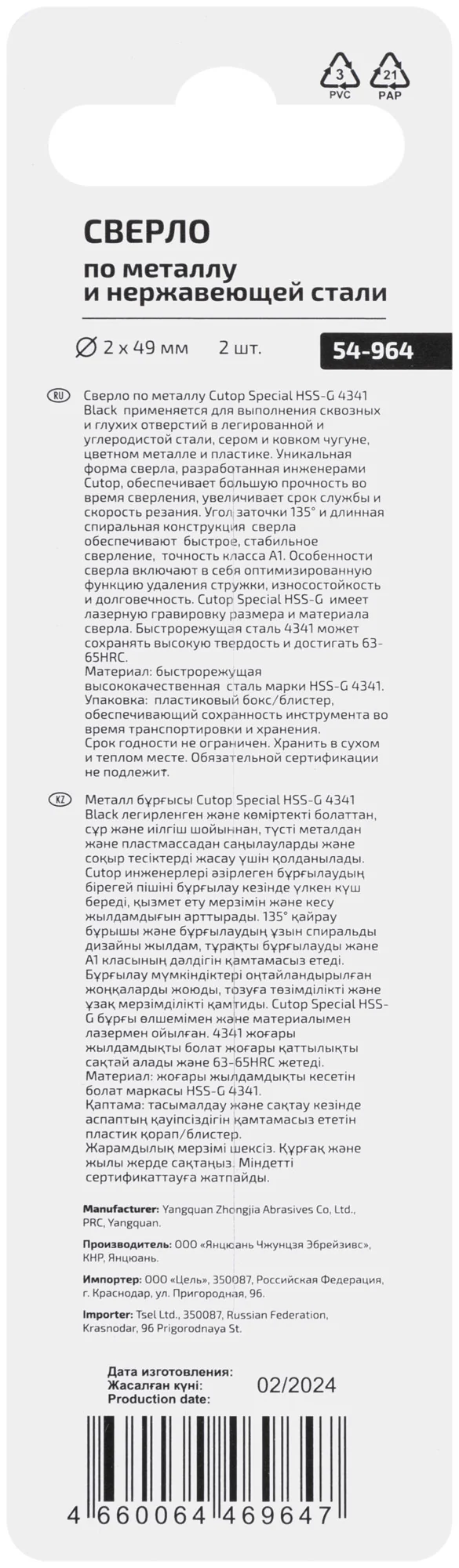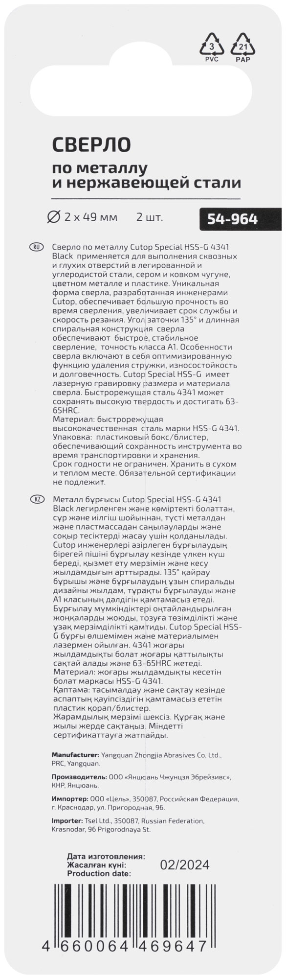 Сверло по металлу Cutop Special HSS-G предназначено для выполнения сквозных и глухих отверстий в металлических заготовках. Идеально подходит для работы с легированной и углеродистой сталью, серым и ковким чугуном, а также цветными металлами и пластиком. Используйте его для точного сверления при производстве и ремонте металлических конструкций.