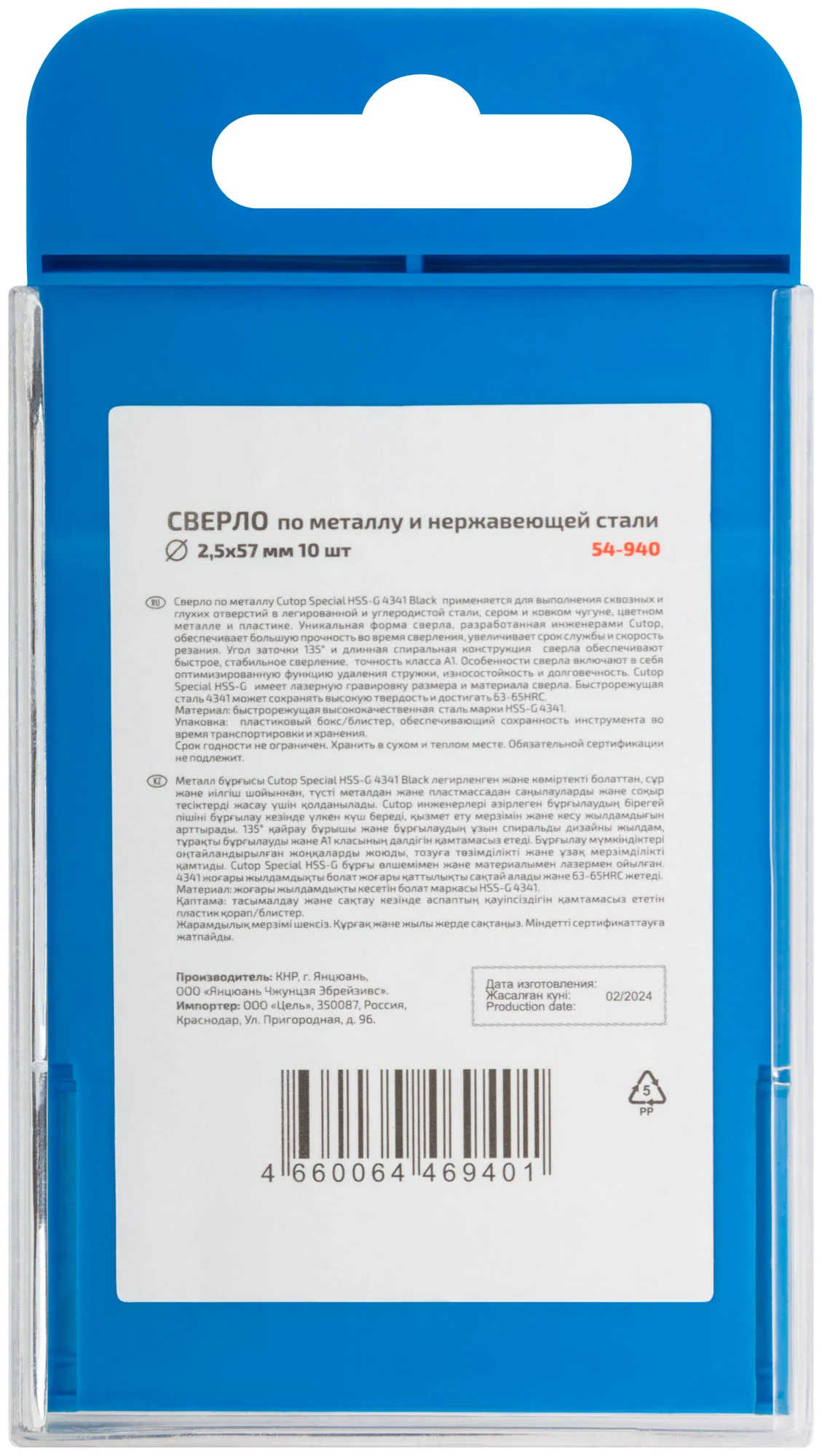 Сверла Cutop Special HSS-G диаметром 2,5 мм идеально подходят для выполнения сквозных и глухих отверстий в металлических заготовках. Эти сверла справляются с легированной и углеродистой сталью, серым и ковким чугуном, а также с цветными металлами и пластиком, обеспечивая точность и чистоту отверстий.