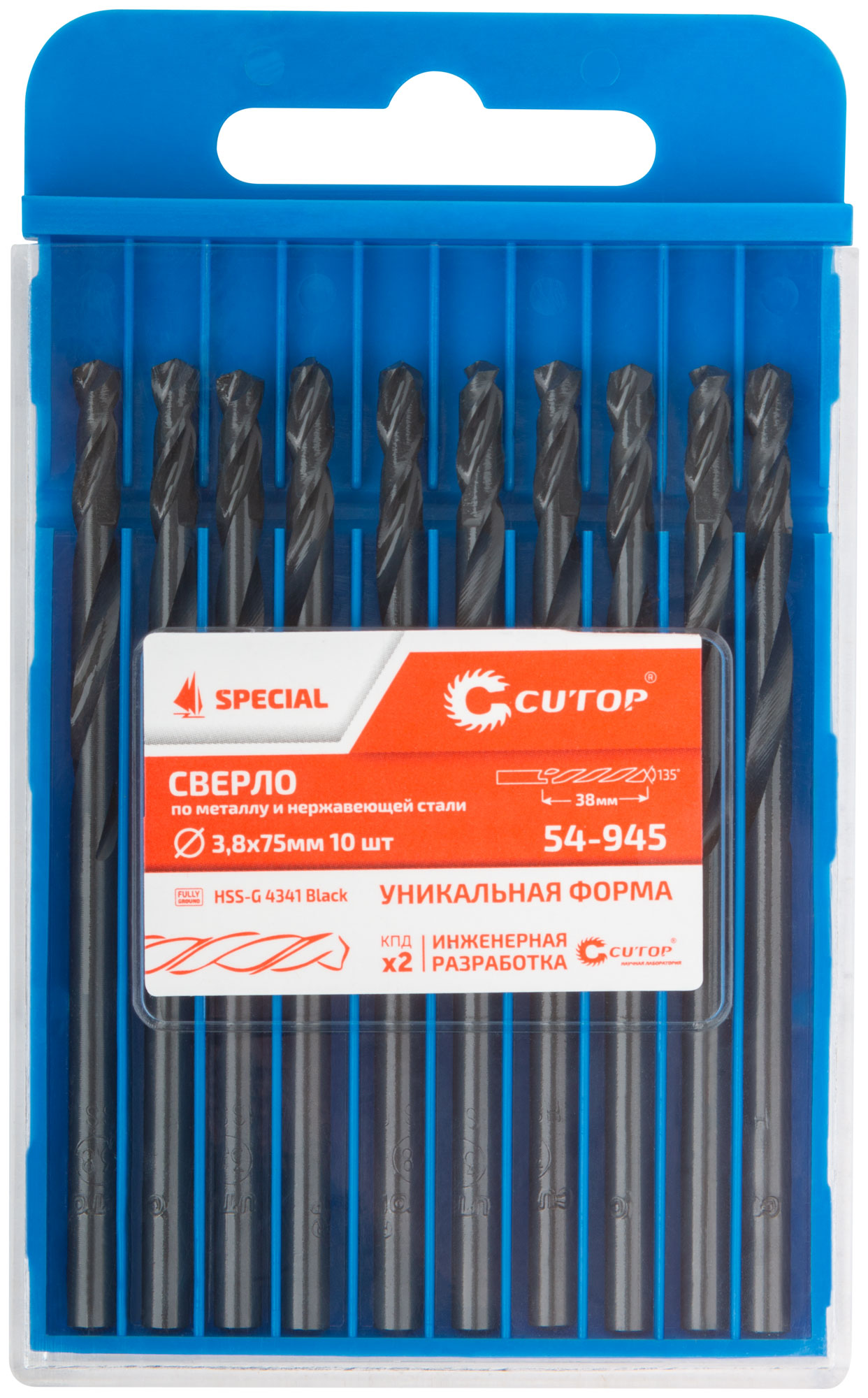 Сверло по металлу Cutop Special, модель HSS-G, диаметром 3,8 мм и длиной 75 мм, отлично подходит для выполнения сквозных и глухих отверстий в различных металлических заготовках. Этот инструмент незаменим при работе с легированной и углеродистой сталью, серым и ковким чугуном, а также цветными металлами и пластиком.