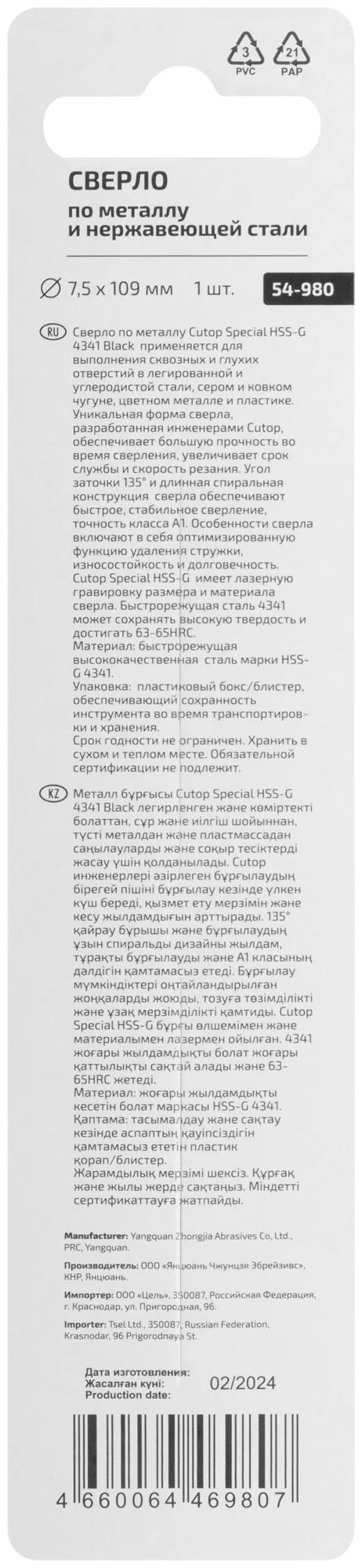 Сверло Cutop Special HSS-G идеально подходит для выполнения сквозных и глухих отверстий в металлических заготовках, включая легированную и углеродистую сталь, серый и ковкий чугун, а также цветные металлы и пластик. Это незаменимый инструмент для профессионалов, которым требуется точность и надежность в каждом отверстии.