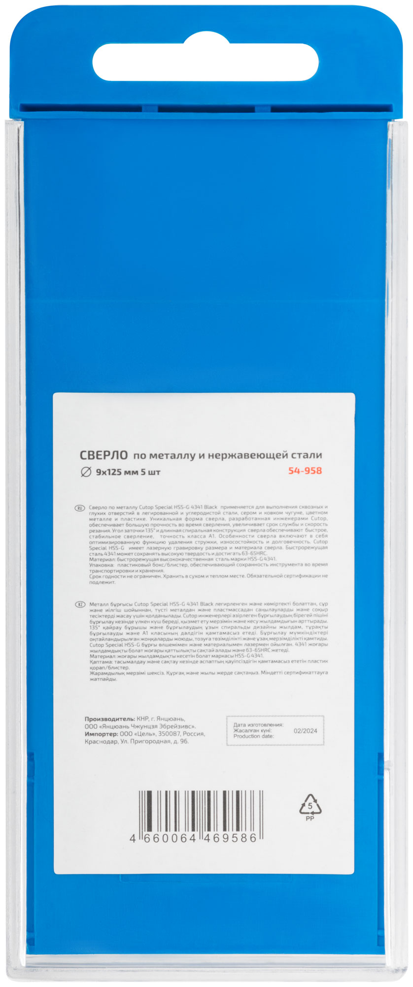 - 5 сверл Cutop Special HSS-G 9 х 125/72 мм в блистере