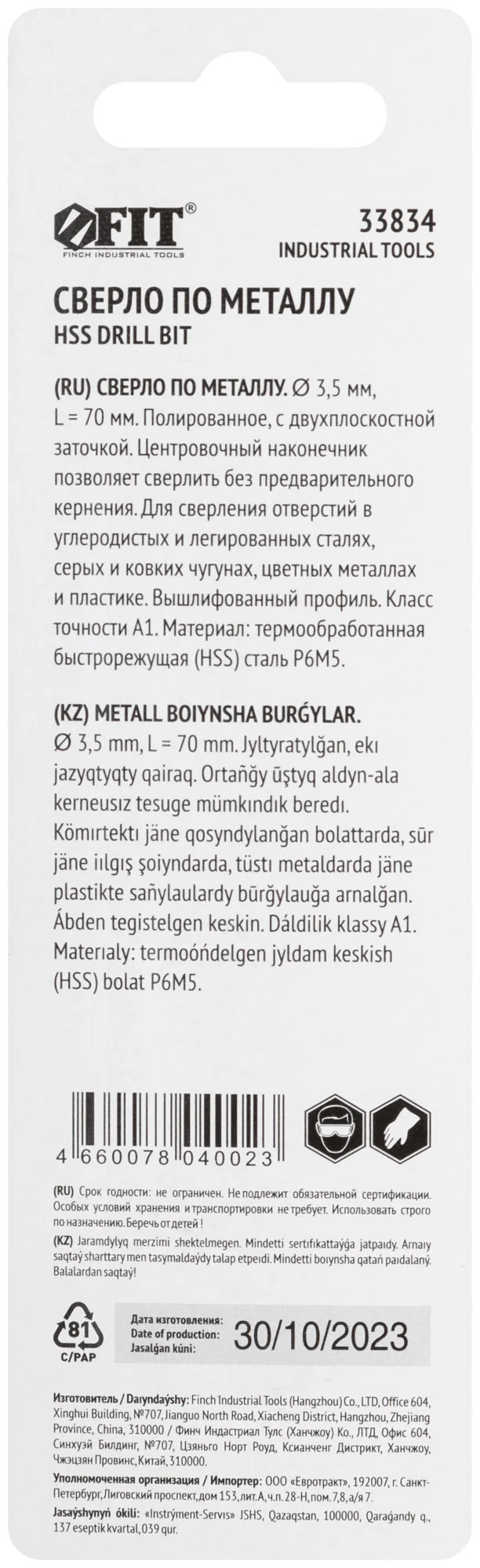 Выберите сверло по металлу HSS от FIT, чтобы обеспечить высокое качество и надежность в вашей работе.