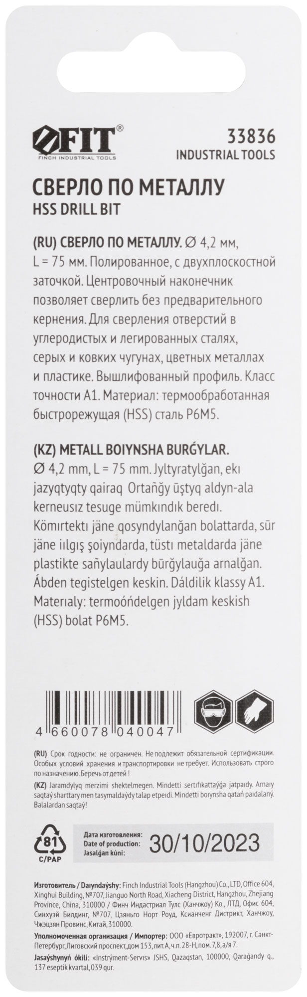 Выберите сверло FIT 33836, чтобы обеспечить надежную и точную работу в ваших проектах по металлообработке.