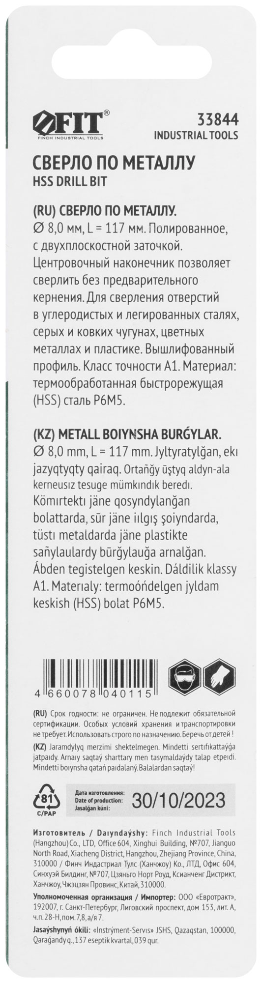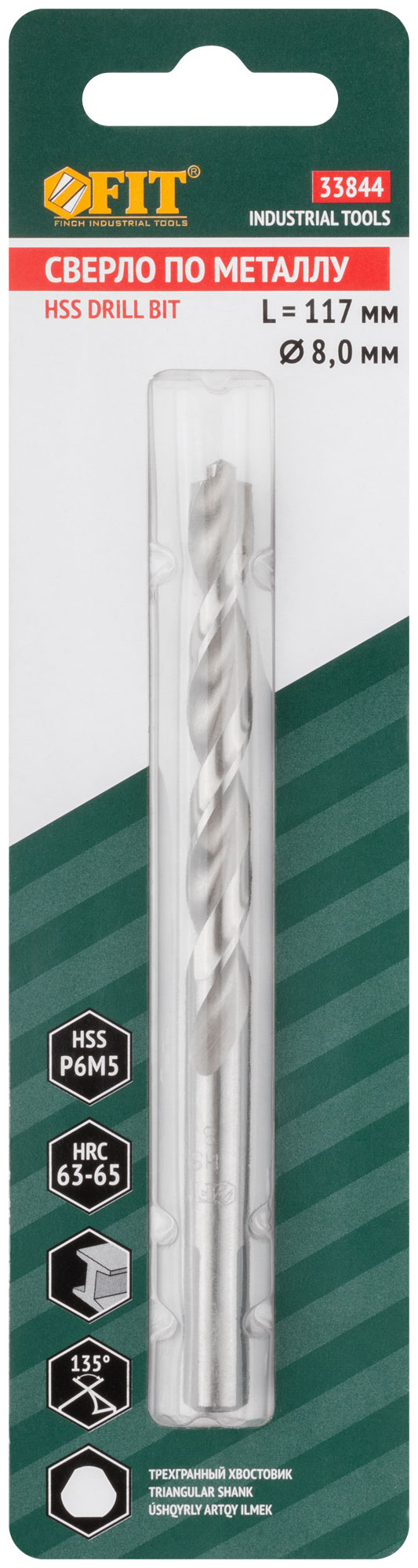 Сверло FIT с диаметром 8,0 мм и длиной 117 мм идеально подходит для точного сверления металла. Благодаря центровочному наконечнику, вы можете начать работу без предварительного кернения, что значительно ускоряет процесс.