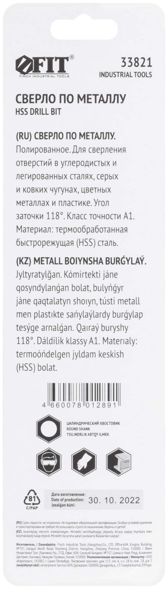Выберите сверло по металлу FIT 10,0 мм, чтобы обеспечить надежность и точность в работе с металлическими материалами.