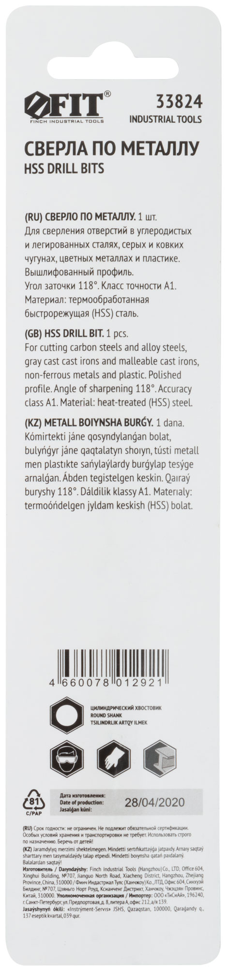 Выберите сверло FIT 33824 для уверенной и качественной работы с металлом.