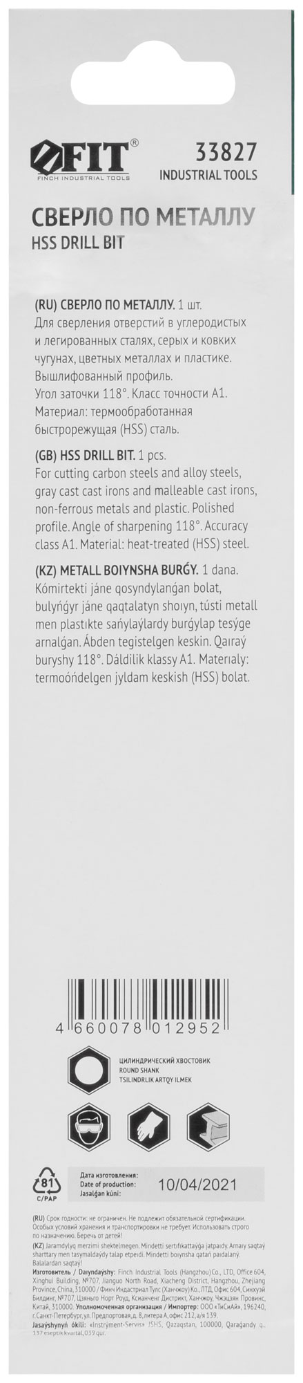Изготовлено из быстрорежущей стали HSS, это сверло имеет полированную поверхность, что снижает трение и повышает устойчивость к нагреву. Угол заточки 118° обеспечивает оптимальную резку и долговечность инструмента. Упаковано в удобный блистер.