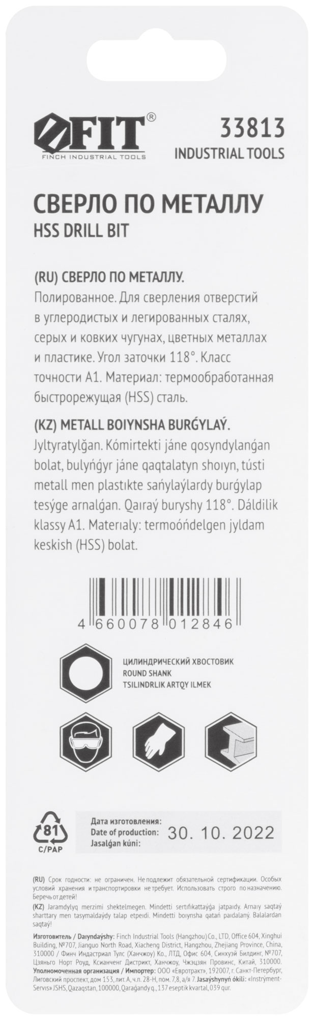Выберите сверло FIT 33813, чтобы обеспечить надежность и качество выполнения ваших работ.