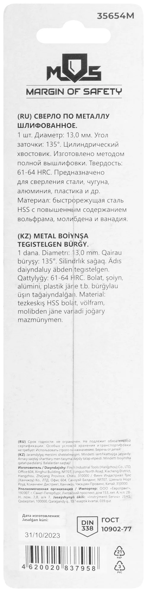 Выберите сверло по металлу MOS 35654М, чтобы обеспечить надежное и точное сверление в ваших проектах.