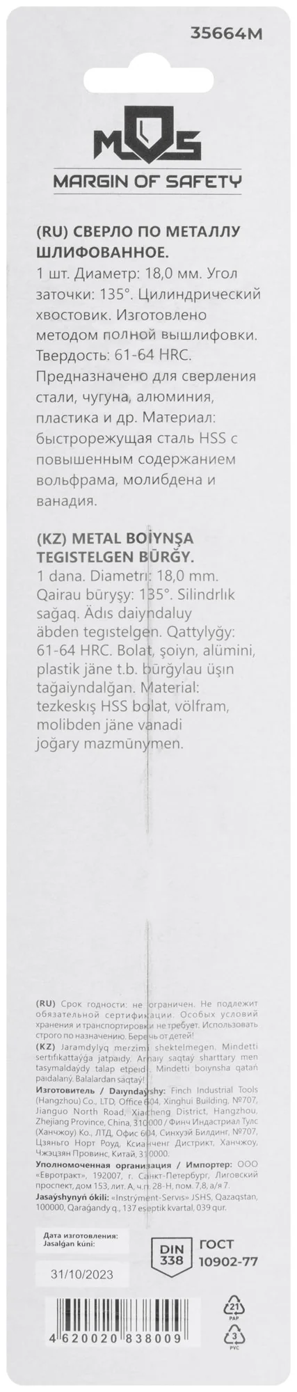 Выберите сверло MOS 35664М, чтобы обеспечить себе надежный и точный инструмент для работы с металлом.