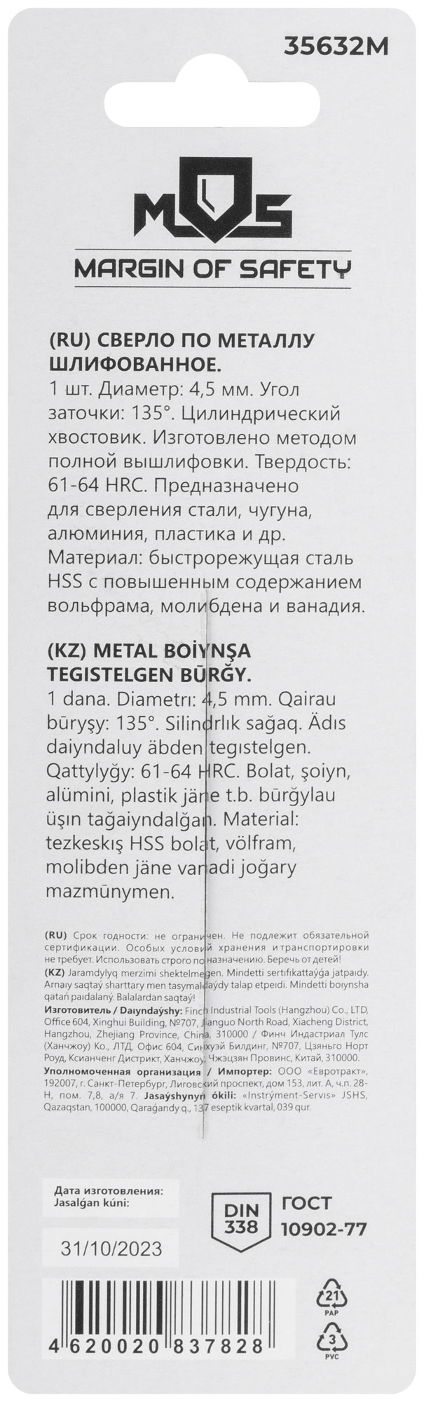 Выберите сверло HSS MOS 35632М, чтобы обеспечить точность и эффективность в вашей работе с металлом.