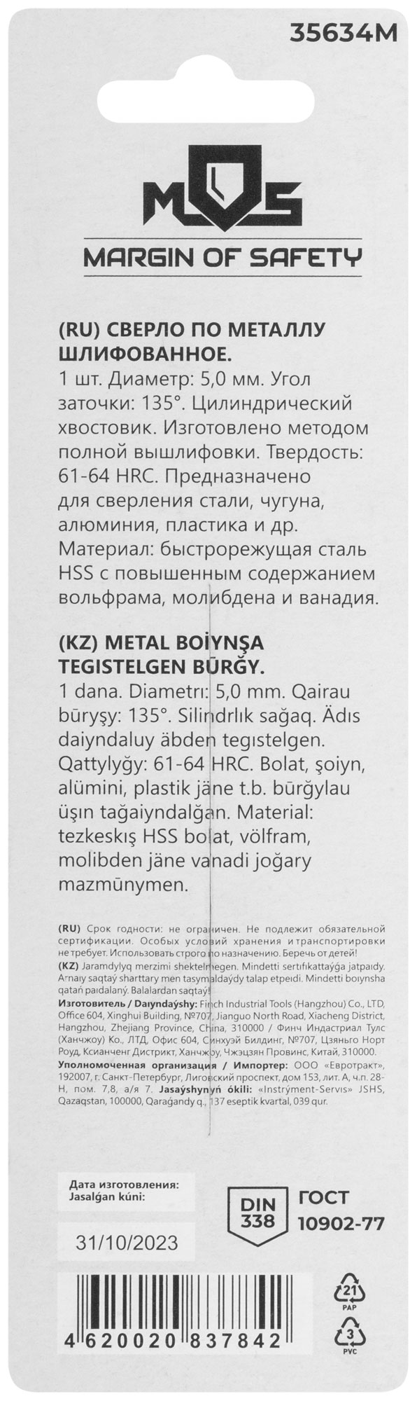 - Одно сверло HSS 5,0 x 86 мм в блистере