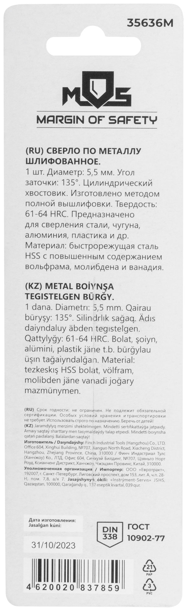 Выберите сверло по металлу MOS 35636М, чтобы обеспечить себе надежность и эффективность в работе с металлом.