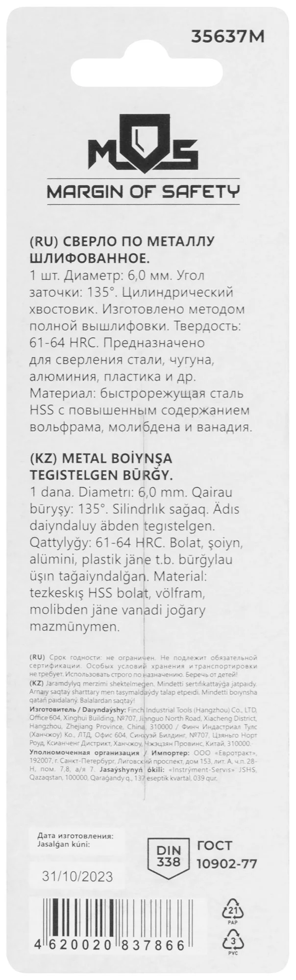 Выберите сверло по металлу MOS 35637М, чтобы обеспечить надежное и точное сверление в любых условиях.