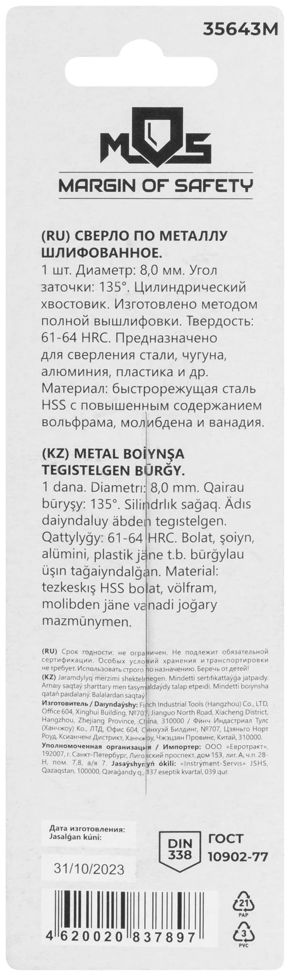 Выберите сверло по металлу HSS от MOS, чтобы обеспечить точность и качество в ваших работах.