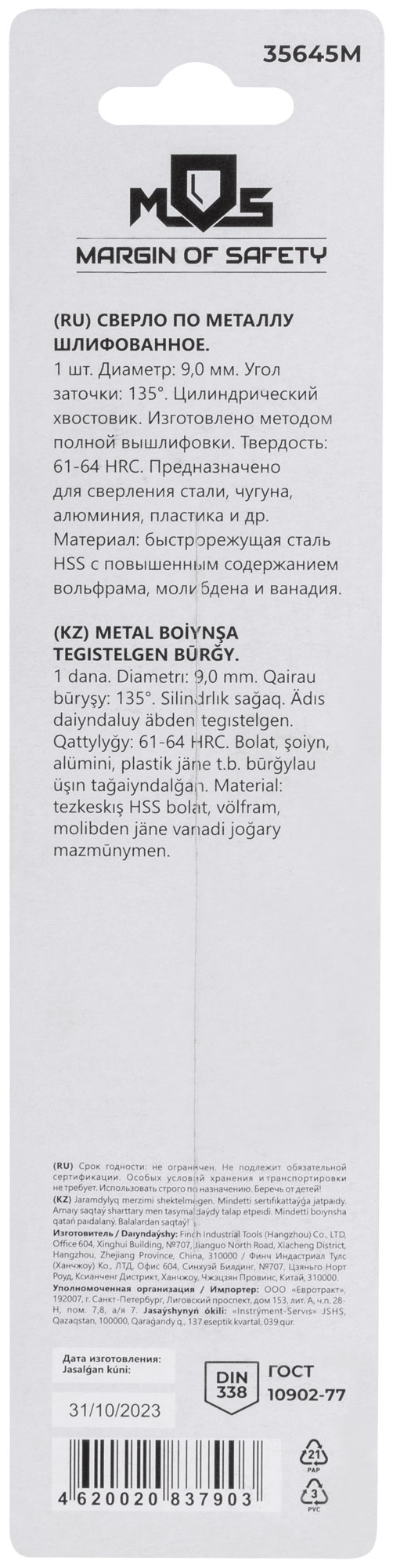 Выберите сверло MOS 35645М для качественного и безопасного сверления металла. Его надежность и долговечность помогут вам добиться отличных результатов в работе.