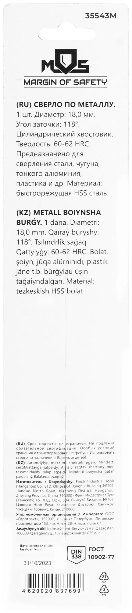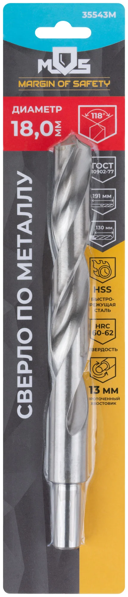 Сверло по металлу HSS 18,0 x 191 мм с углом заточки 118° для точных работ