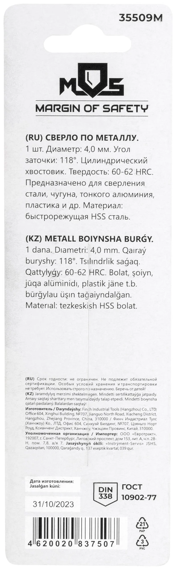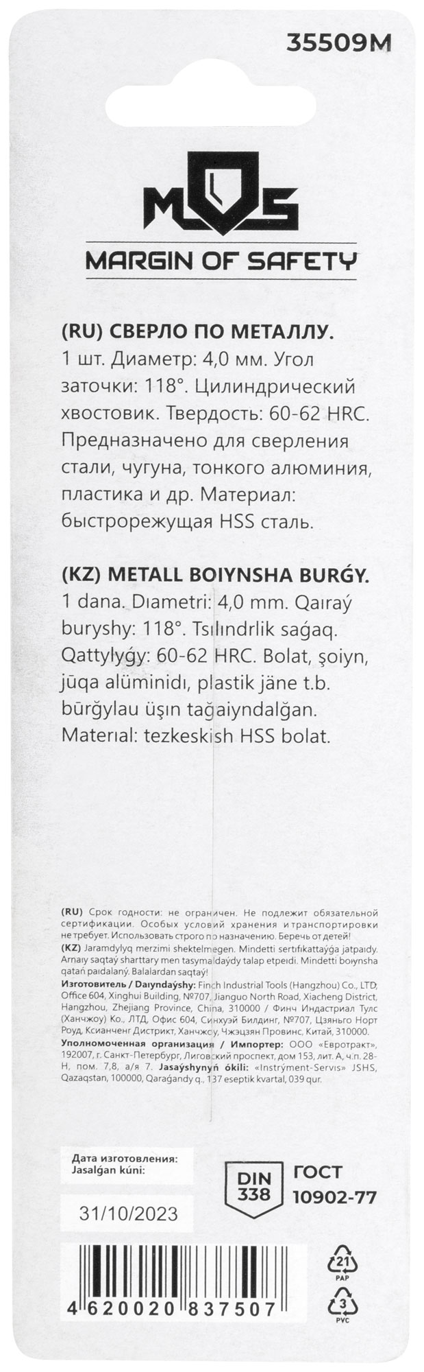 Выберите сверло MOS 35509М для надежного и качественного выполнения ваших сверлильных работ по металлу.