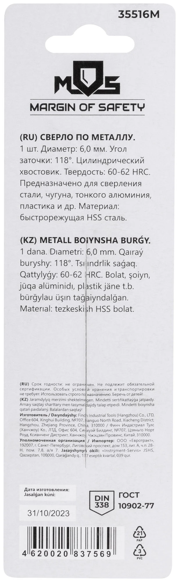 Выберите сверло MOS 35516М, чтобы обеспечить точность и надежность в ваших проектах по металлообработке.
