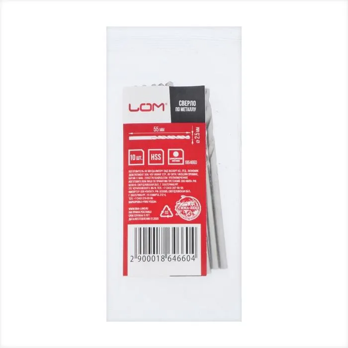 Сверло по металлу ЛОМ, HSS, цилиндрический хвостовик, 2.5×55 мм, 10 шт. — Характеристики