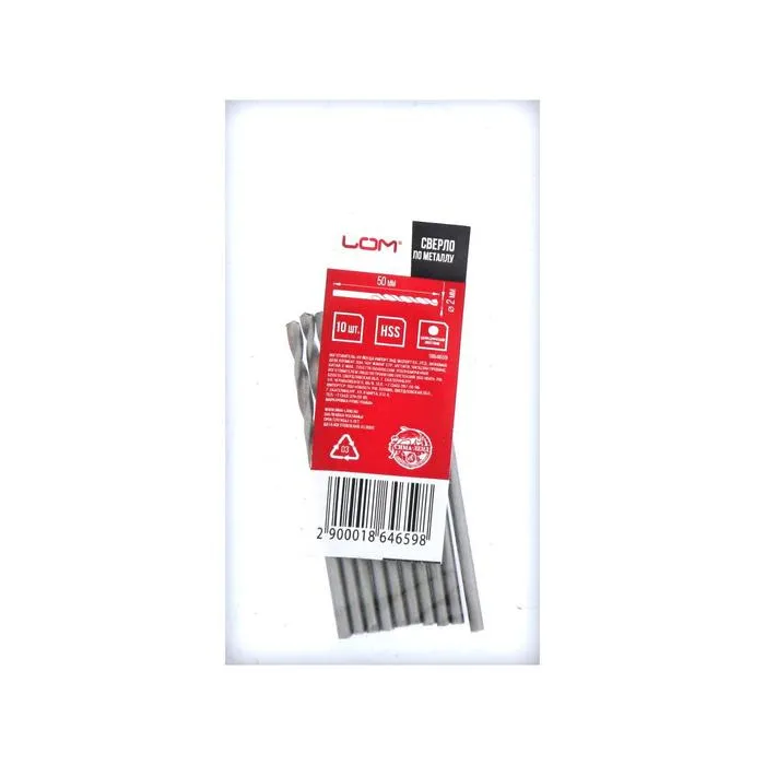 Сверло по металлу ЛОМ, HSS, цилиндрический хвостовик, 2×50 мм, 10 шт. — Характеристики
