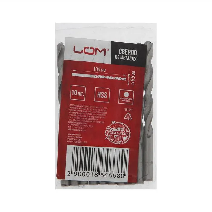 Сверло по металлу ЛОМ, HSS, цилиндрический хвостовик, 6.5×100 мм, 10 шт. — Характеристики