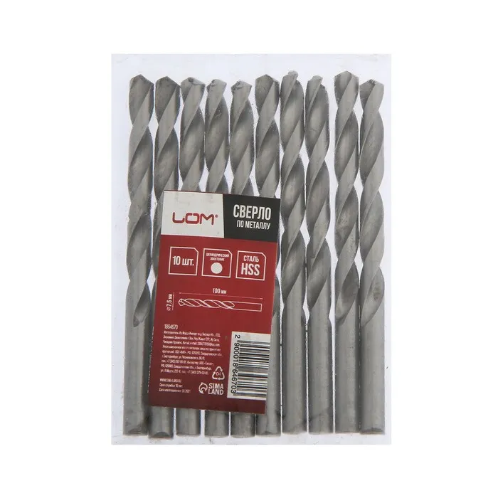 Сверло по металлу ЛОМ, HSS, цилиндрический хвостовик, 7.5×110 мм, 10 шт. — Характеристики